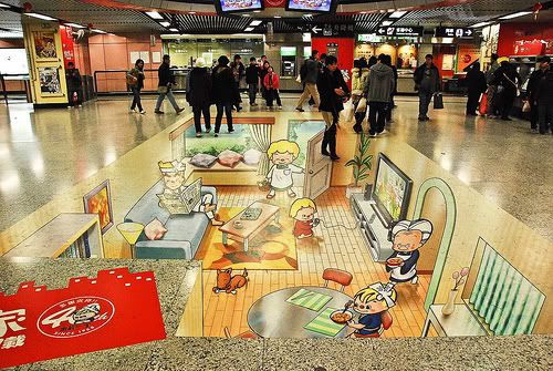 Julian Beever é um artista inglês, muito famoso e conhecido pela arte que faz nas calçadas de ruas da Inglaterra, França, Alemanha, Estados Unidos, Austrália, e Bélgica. O fascinante é, que apesar das imagens serem desenhadas no chão, quando visto de um certo ângulo parecem ser tridimensionais!